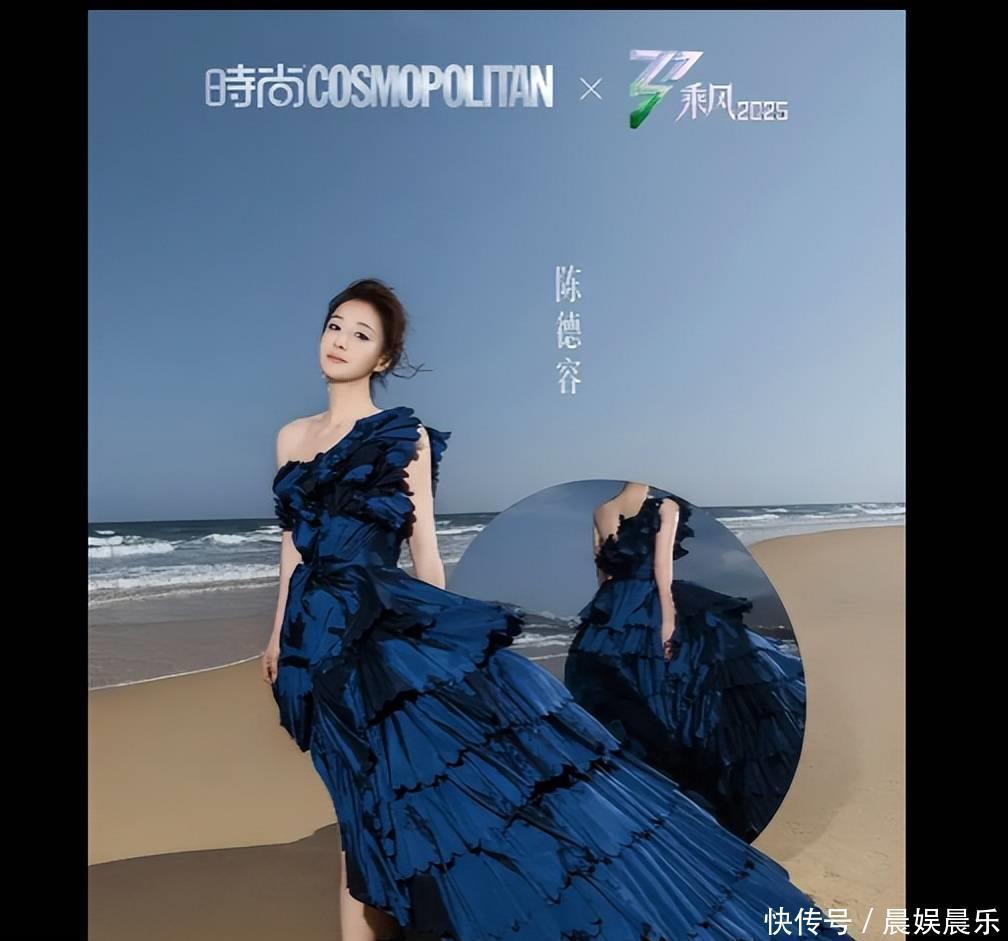 陈德容穿蓝色单肩长裙,情状超好,算作一个中国台湾艺东说念主,她的东说念主气一直很好,天然是一个70后,关联词如故女东说念主味透彻,出演过《梅花烙》,《水云间》,《一帘幽梦》等,许多齐是脍炙东说念主口的剧作了。